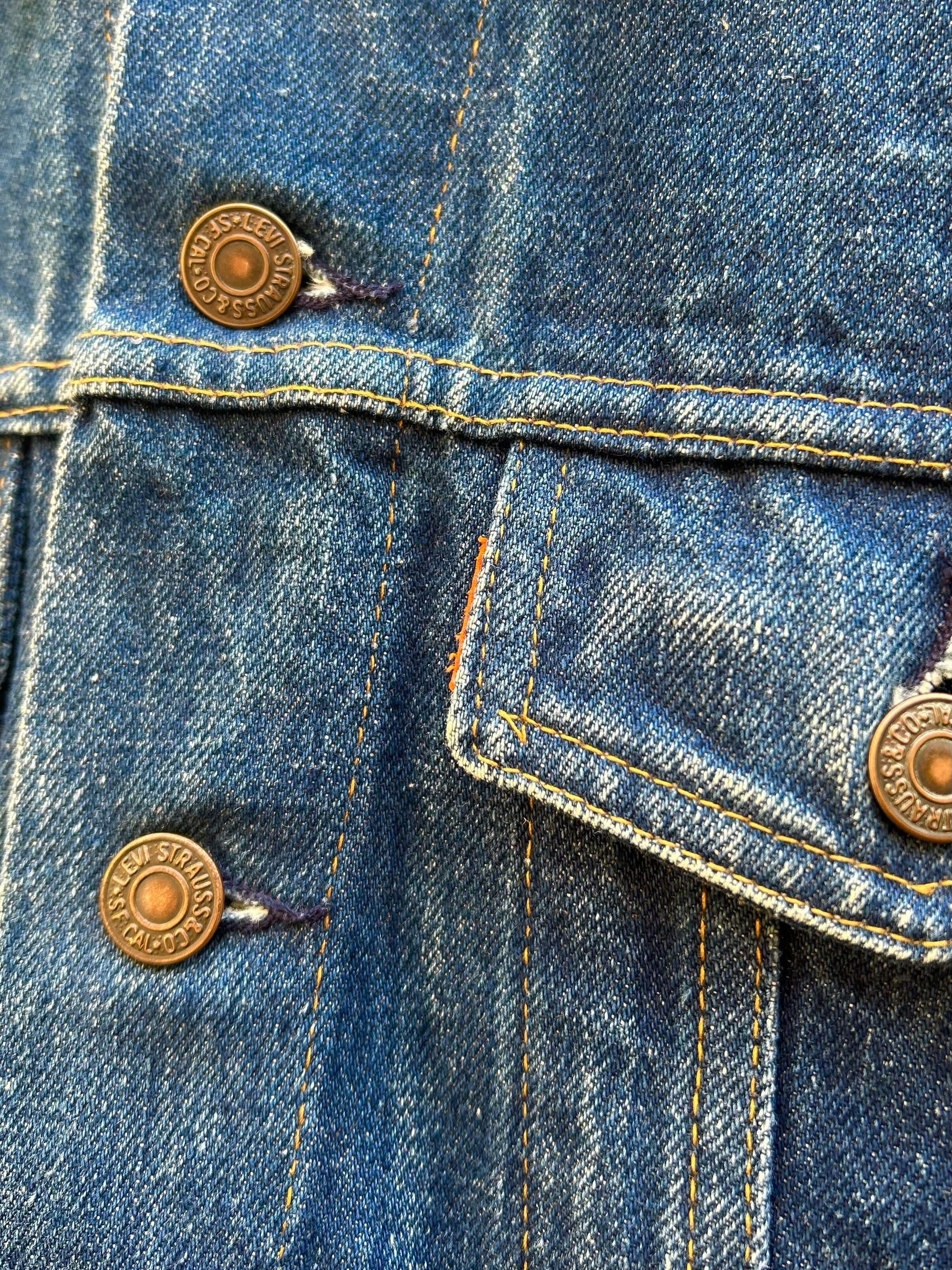 グレート・ブリテン製のリーバイスのデニムジャケット。オレンジタブ。