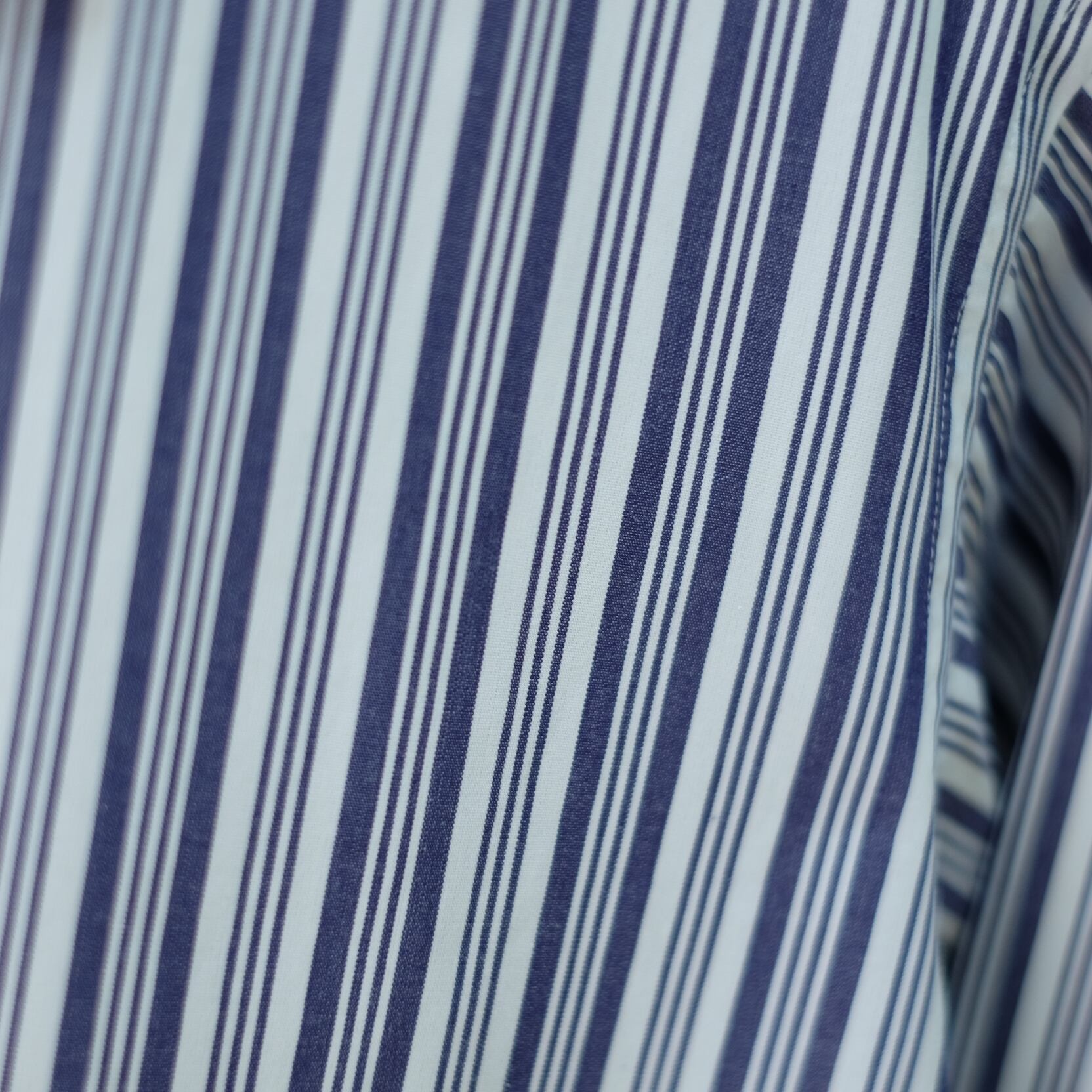 ブランドらしい極上なタッチのコットン素材にピッチを変えたホワイトとネイビーのストライプ柄。