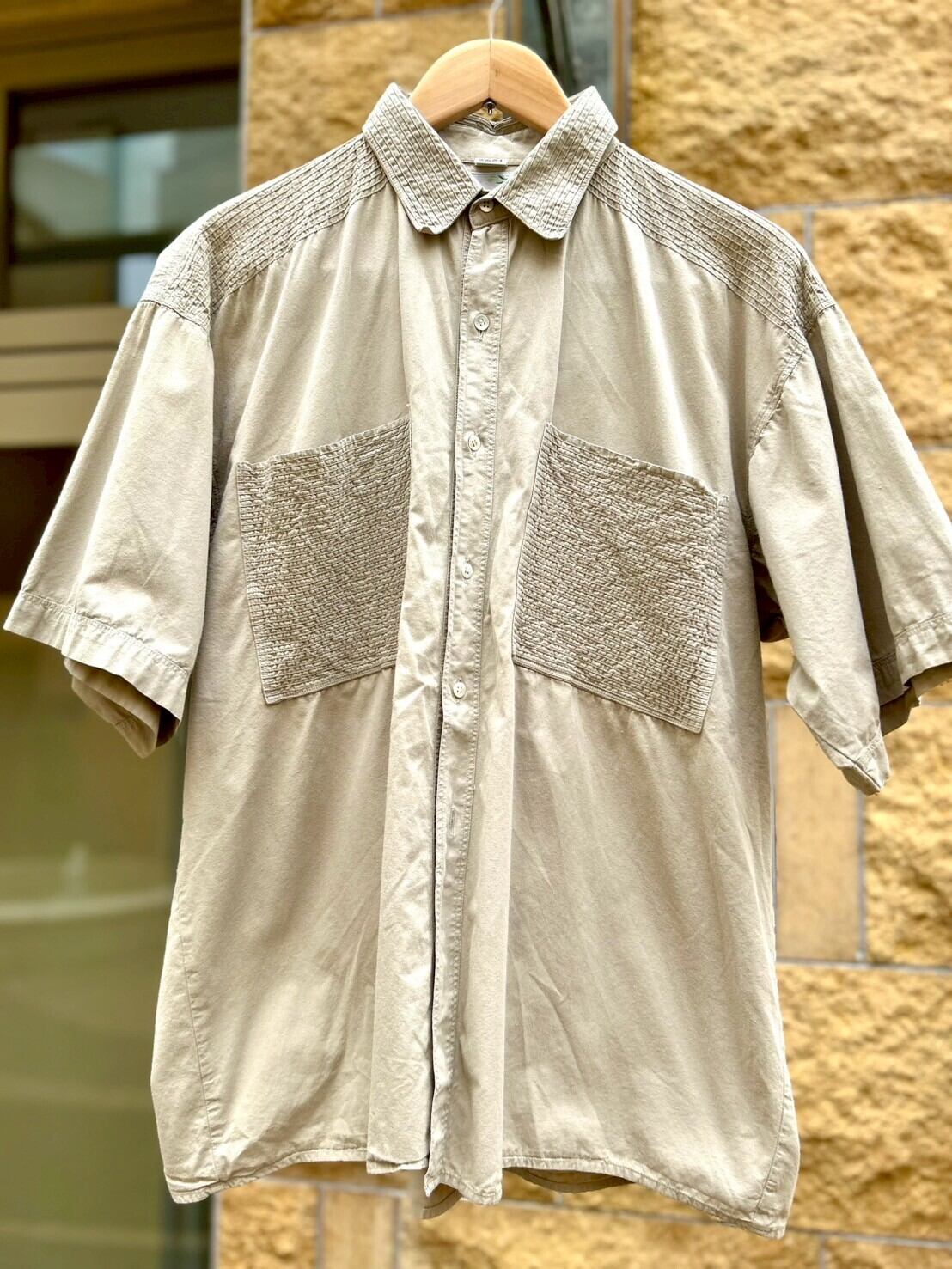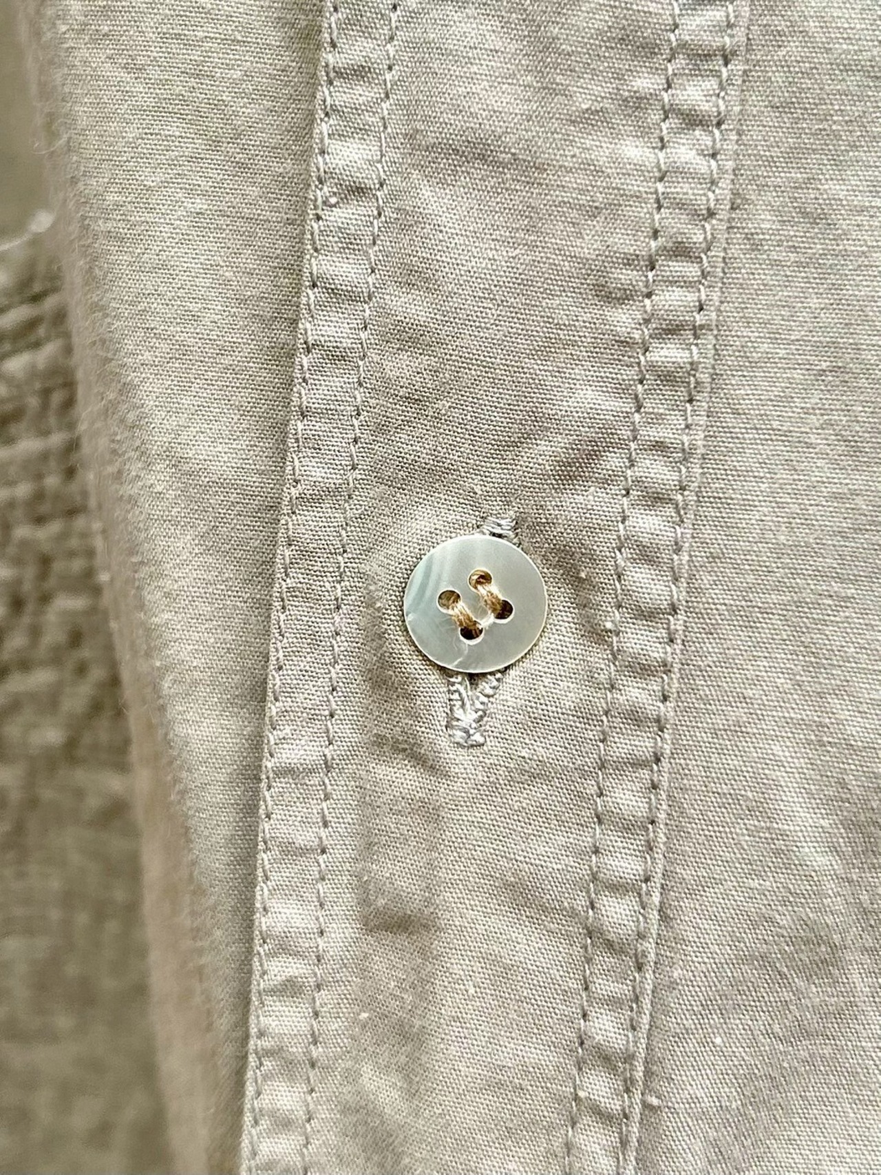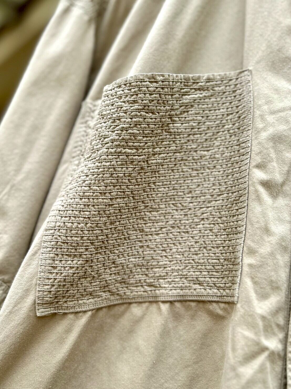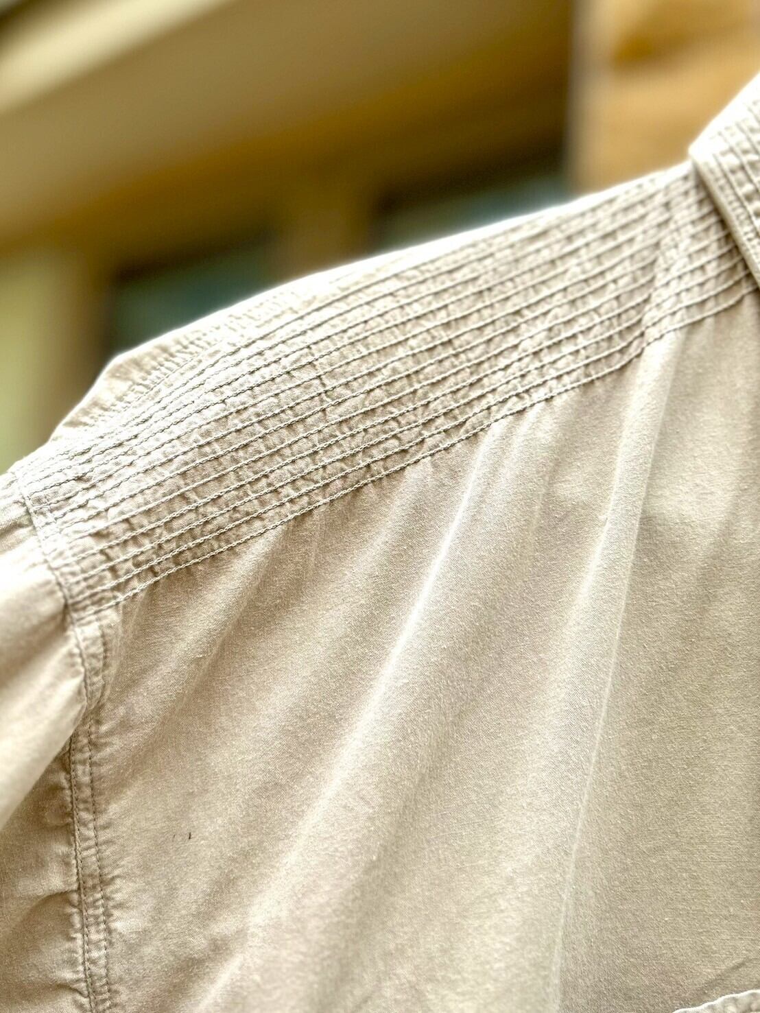 シンプルなベージュカラーではありますが、襟や肩、胸ポケットに何層にもステッチが入る唯一無二のデザインな1着かと思います。