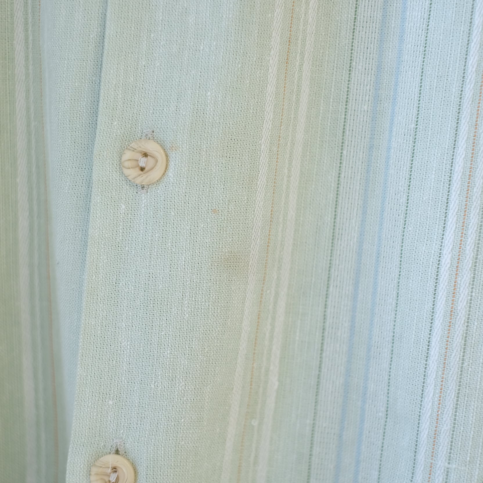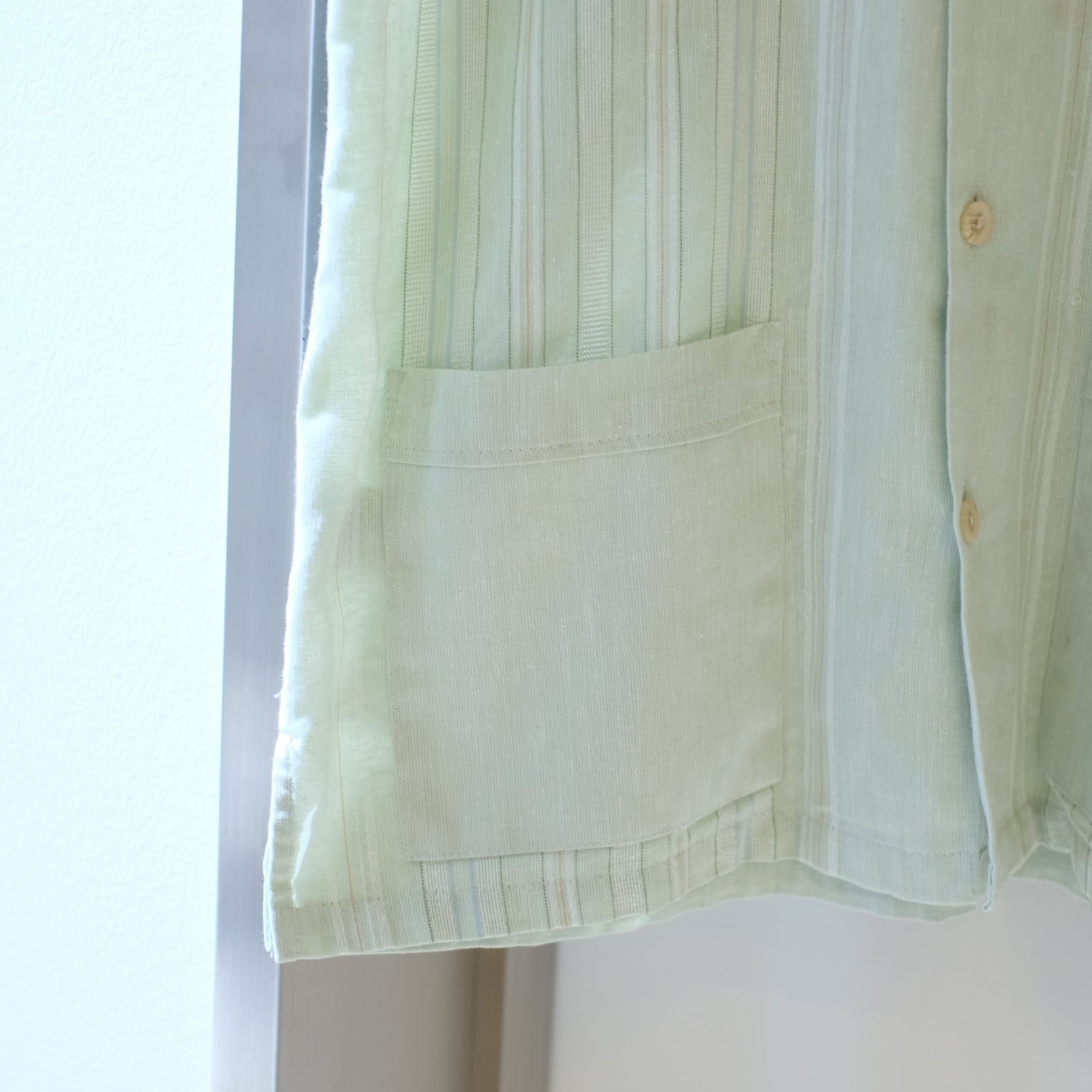 ライトグリーンベースにオレンジとブルーのストライプ、所々メッシュ生地に切り替わった素材感が魅力的です。